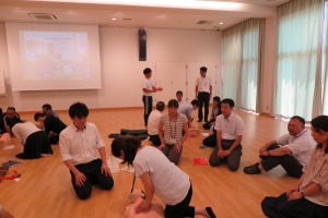 午後からは、教職員向けの救急法講習会が行われました。グループに分かれて心肺蘇生法、AED使用法に熱心に取り組んでいました。明日からは夏休みです。特演、海外研修、部活など様々な行事が行われます。これまでにないほどの暑さが日本列島を覆っています。体調管理に気を配りこの暑さを乗り越えて下さい。