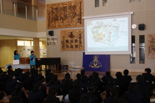11月15日(金)、中学1年生の深学科プログラムの一環として環境ボランティア団体「次世代のためにがんばろ会」の皆さまをお呼びして講演及びワークショップ(体験型の学び)を行っていただきました。