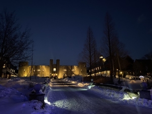 5:40分に学校を出発し、熊本空港から羽田空港へ無事に到着。今日の空はずっと雲一つない天気でしたので、機内から眺める景色に見惚れている生徒も多くいました。 到着後はバスで移動し、ゆったりとした車内で都内の景色を眺めながら東北へと向かいました。目的地であるブリテッシュヒルズまでは約4時間の長旅ですが、ガイドさんのお話にもしっかり耳を傾ける姿が見られました。東北道を北上し、羽生PA(埼玉県)、那須高原SA(栃木県)で休憩を取りながら福島県に入りました。「白河の関」で有名な白河ICを降りると徐々に雪景色が見え始め、生徒達もやっと東北に来たという実感が湧いてきたようで、皆のワクワク感が伝わってきました。事前に現地はかなり寒いとお聞しており、防寒対策を事前に呼びかけていましたが、ここ数日は寒さも緩んでいるようで、思っていたよりも暖かく感じました。さらに雪深い道を進み、ブリテッシュヒルズに到着すると、早速、英語でのオリエンテーションとチェックインを行い、いよいよ楽しみにしていたレッスンとなりました。今日は3つのグループに分かれ、「Cooking」、「Fabric Painting」、「Pub Games」のレッスンを受けましたが、生徒全員が長旅の疲れも見せることなく、ポジティブにレッスンに参加している姿がとても印象的でした。夕食も、食欲旺盛でどんどんおかわりしていて、とても安心しました。夕食後のフリータイムアクティビティにも積極的に参加する生徒が多く、とても感心させられました。「オンライン英会話」など日頃の学習のおかげで英語を身近に感じ、自主的に学ぶ姿勢につながっていることがとても素晴らしいことだと感じました。 今日は順調過ぎるくらいに予定通りに進み、大きなトラブルや体調不良者もなく、無事に1日目を終えることができました。 引き続き感染対策、体調管理に努め、生徒達と共に思い出に残る旅を作っていきたいと思います。