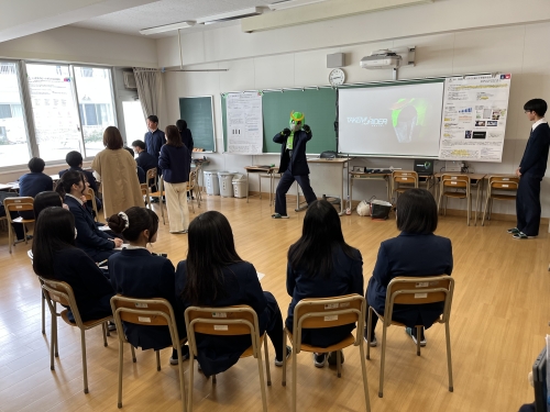 1年生の「探究Ⅱ」は、学年の先生方が提案した大まかなテーマから、生徒たちがそれぞれ設定した課題を探究したものをポスターにまとめ発表を行いました。また、2年生の「探究Ⅲ」は、生徒たちが自分の興味関心に基づいたテーマで探究を進めたものを発表しました。今年度はプログラミングなどに取り組む生徒が増え、発表のときに実際にモニター画面を見せながら操作してもらいつつ発表を行ったり、映像作品を作成し、その衣装を着けて発表するなど、非常に個性豊かに工夫を凝らした発表が目を引きました。